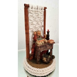 estatueta em marfinite decorada com macramé e paus de canela